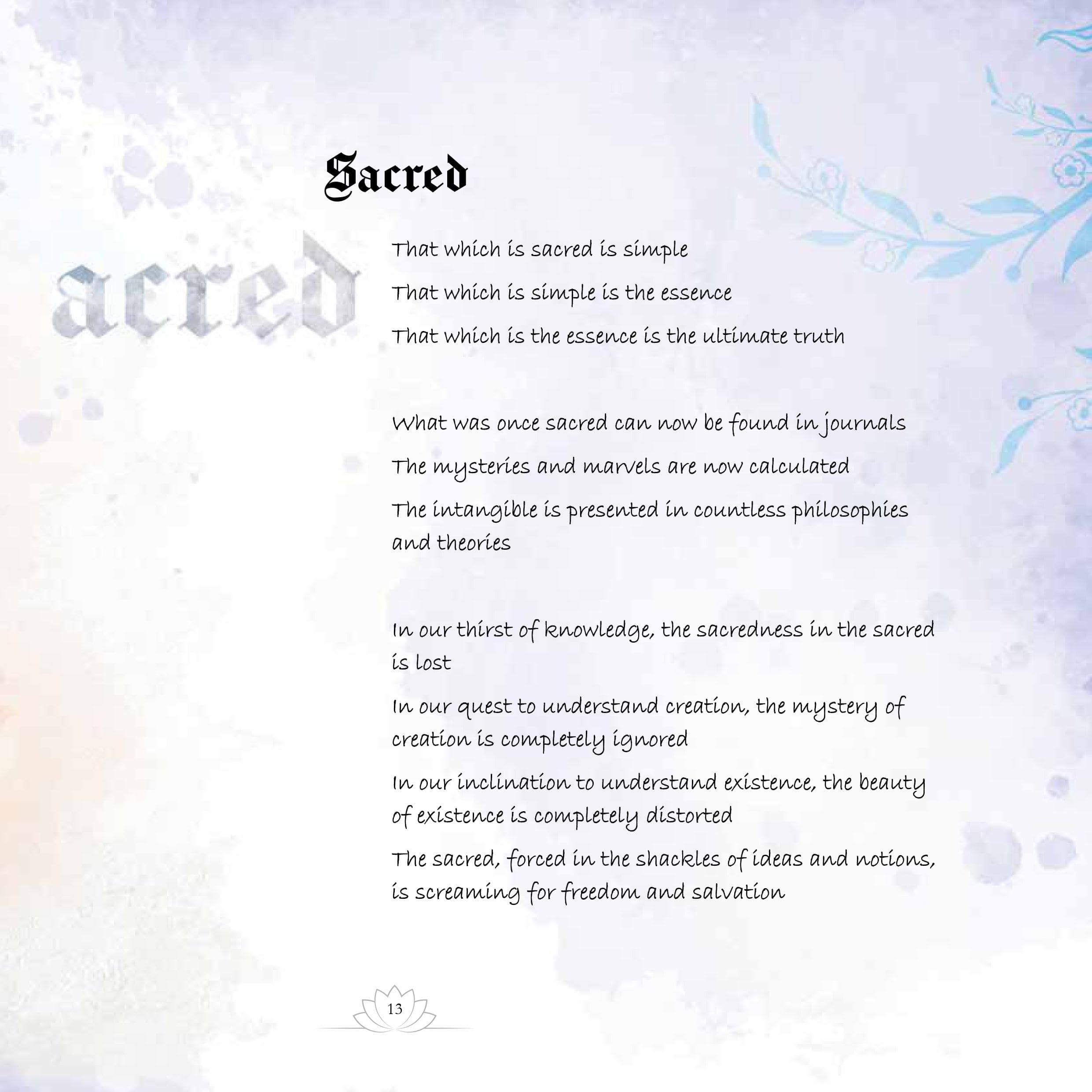 After successfully publishing my first title ‘Sacred – Introspections and Contemplations’, I now bring you my second book entitled ‘Sacred – Projections’.
